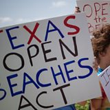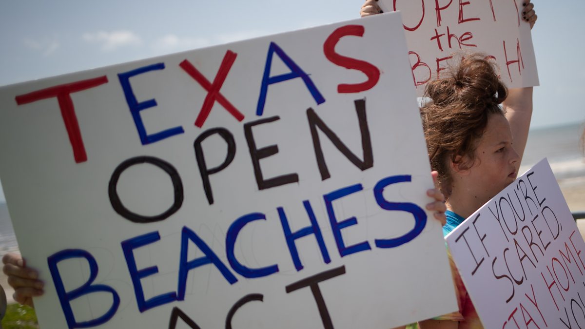 (Photo: Local residents hold signs in protest of closed beaches on the 4th of July amid the global outbreak of the coronavirus disease in Texas. Credit: Reuters).