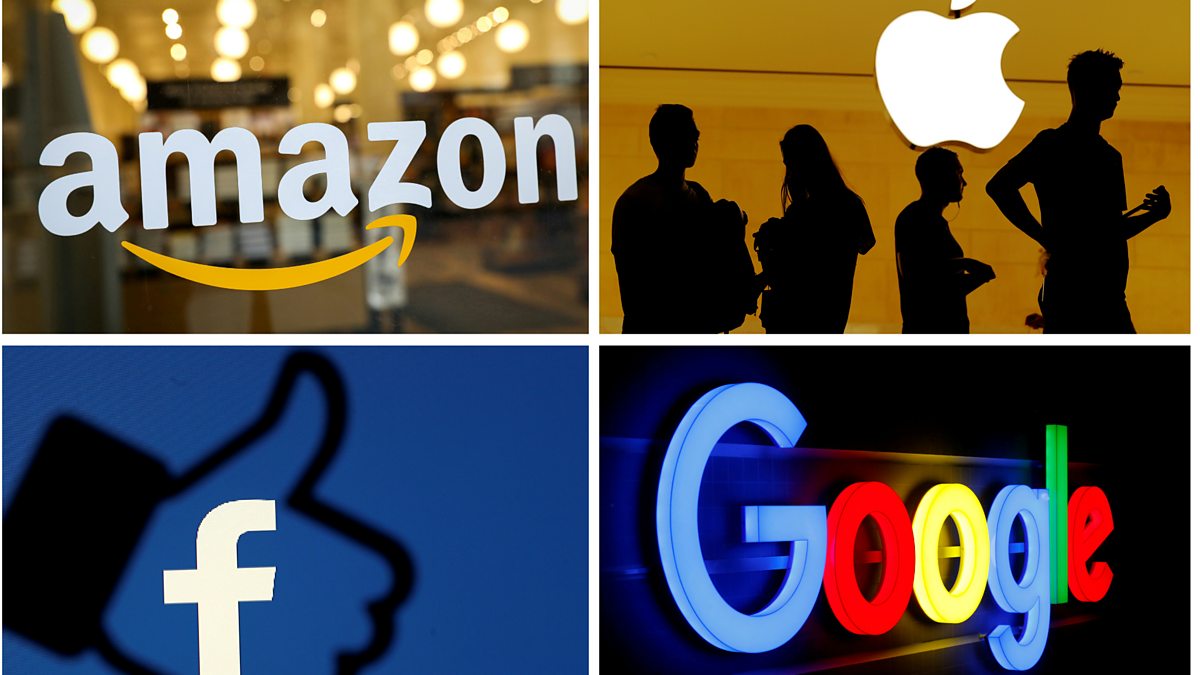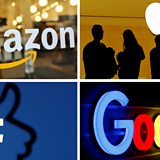 (Photo: The logos of Amazon Apple Facebook and Google. Credit: REUTERS/File Photos)