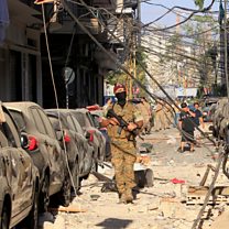 (Photo: A member of the security forces walks along a smashed-up street near the site of Tuesday’s blast in Lebanon Credit: Reuters/Aziz Taher/File Photo)