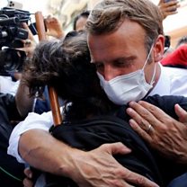 (Picture: President Macron of France mobbed by residents of Beirut. Credit: Reuters)
