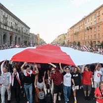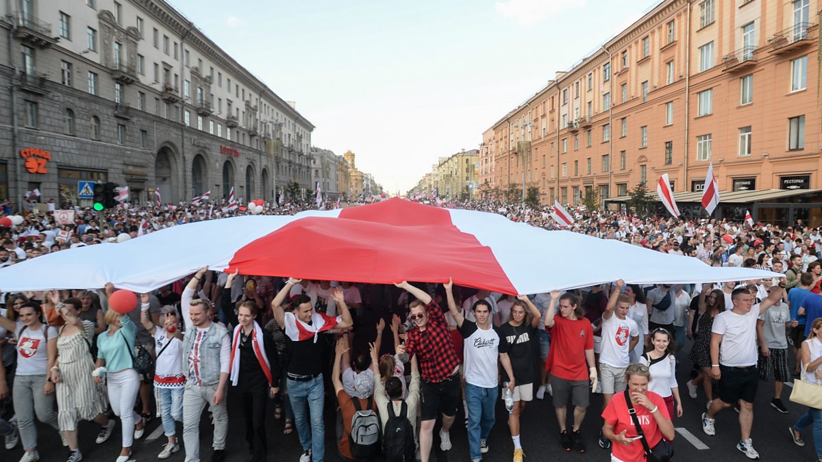 (Photo: People attend a rally against police brutality and the results of the Belarusian presidential election in Minsk, Belarus, 16 August 2020. Credit: EPA/YAUHEN YERCHAK)