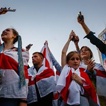 (Picture: People attend a protest against the results of the presidential elections in Belarus. Credit: EPA/TATYANA ZENKOVICH)