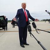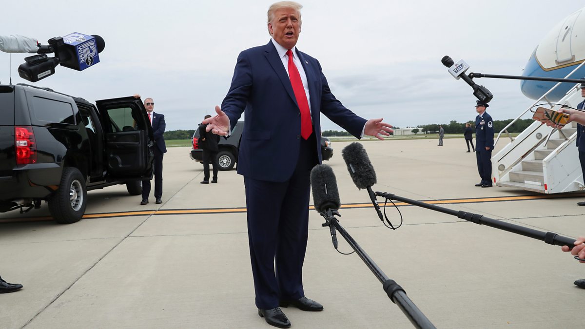 (Photo: U.S. President Donald Trump talks to reporters as disembarks from Air Force One on his way to Kenosha. Credit: Reuters).