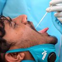 (Photo: An Indian health worker takes swab samples of suspected people for coronavirus COVID-19 in Bangalore. Credit: EPA/Jagadeesh NV)