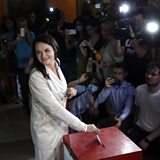 (Photo: Belarusian opposition presidential candidate Svetlana Tikhanovskaya casts her ballot paper at a polling station during the presidential elections in Minsk, Belarus on 9 August 2020. Credit: EPA/Tatyana Zenkovich)