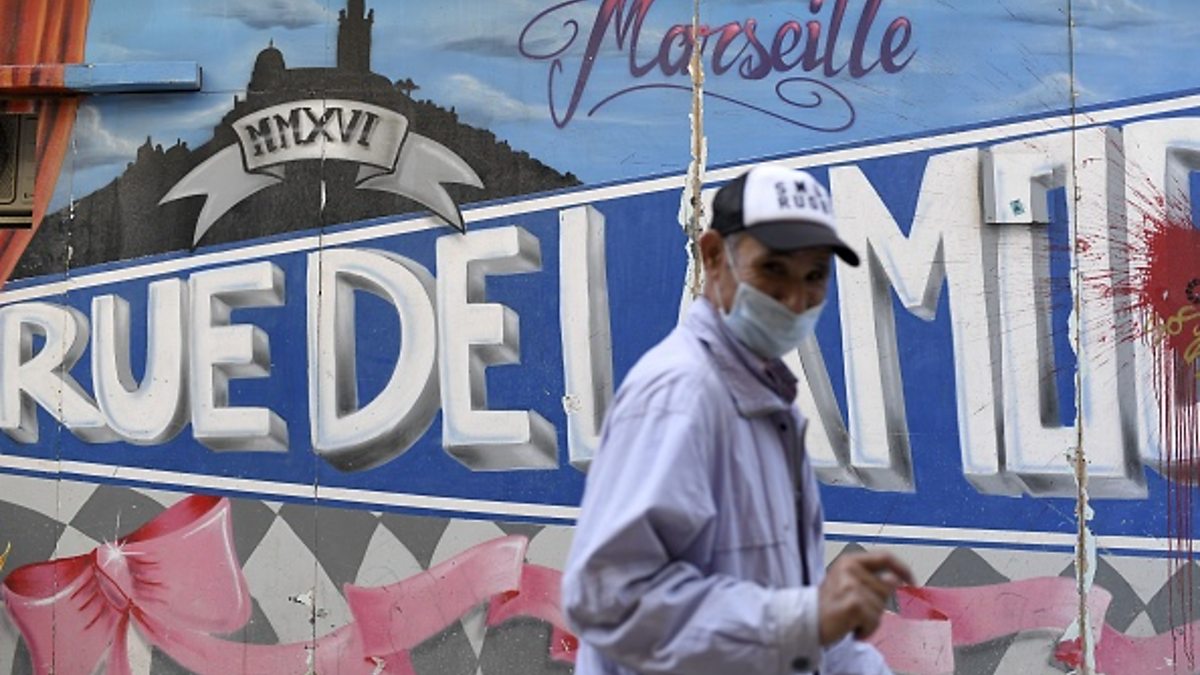 (Picture: A man wearing a face mask in Marseille; Credit: Nicolas Tucat/AFP via Getty Images)
