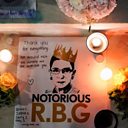 Photo: Candles are lit next to pictures of Justice Ruth Bader Ginsburg as people mourn her death at the Supreme Court in Washington Credit: Reuters