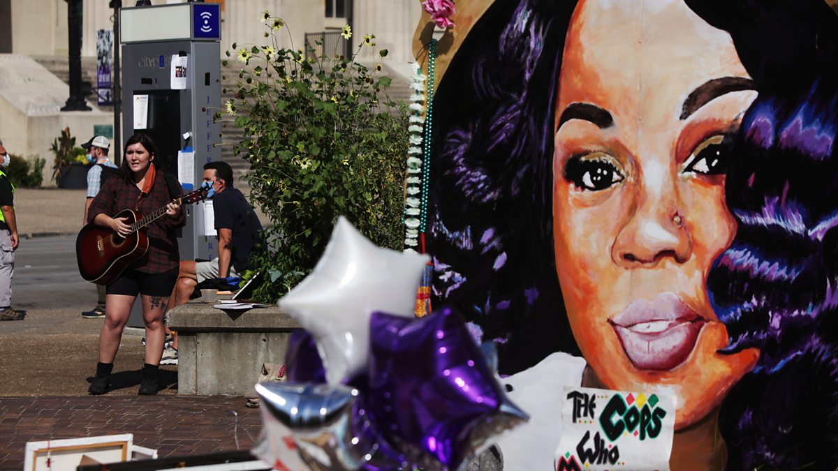 (Photo: A protestor sings at a memorial for Breonna Taylor in Jefferson Square Park in Louisville, Kentucky, USA, 24 September 2020. Credit: EPA/Mark Lyons)