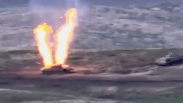 (Photo: Armenia published photos of what it said were destroyed Azerbaijani tanks. Credit: EPA)