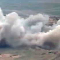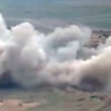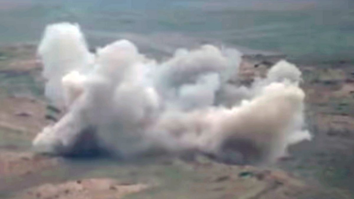 (Image: A still image taken from a handout video footage by the Armenian Defense Ministry shows destruction of allegedly Azerbaijani combat positions. Credit: Epa/Armenian Defence Ministry)