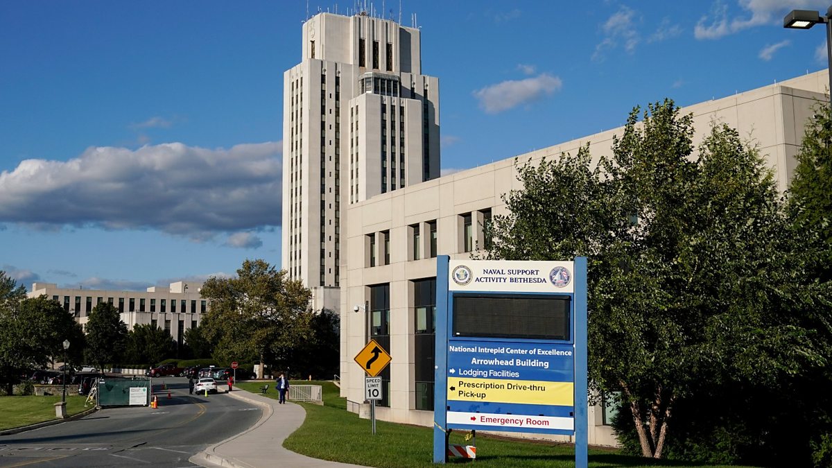 (Image: The Walter Reed National Military Medical Center in Maryland, where President Trump is being treated. Credit: Reuters/Joshua Roberts)