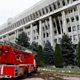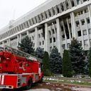 (Photo: Parts of the parliament building in Bishkek were set alight. Credit: Reuters)