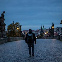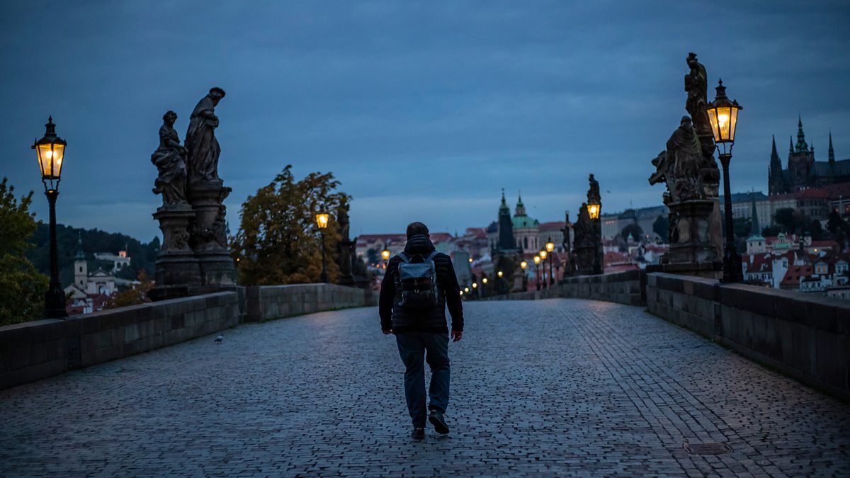 (Photo: A man walks on the Charles Bridge early morning in Prague, Czech Republic. Credit: EPA/Martin Divisek.)