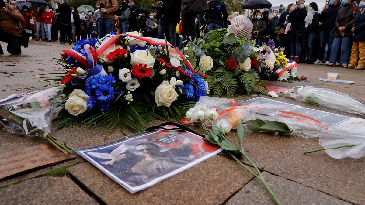 (Photo: Tribute to Samuel Paty, the French teacher who was beheaded in a suburb of Paris. Credit: Reuters)