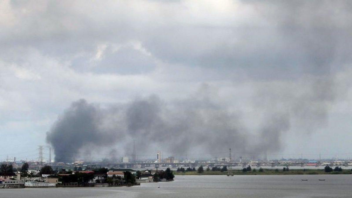 (Photo: Smoke was seen rising over Lagos on Wednesday . Credit: Reuters)