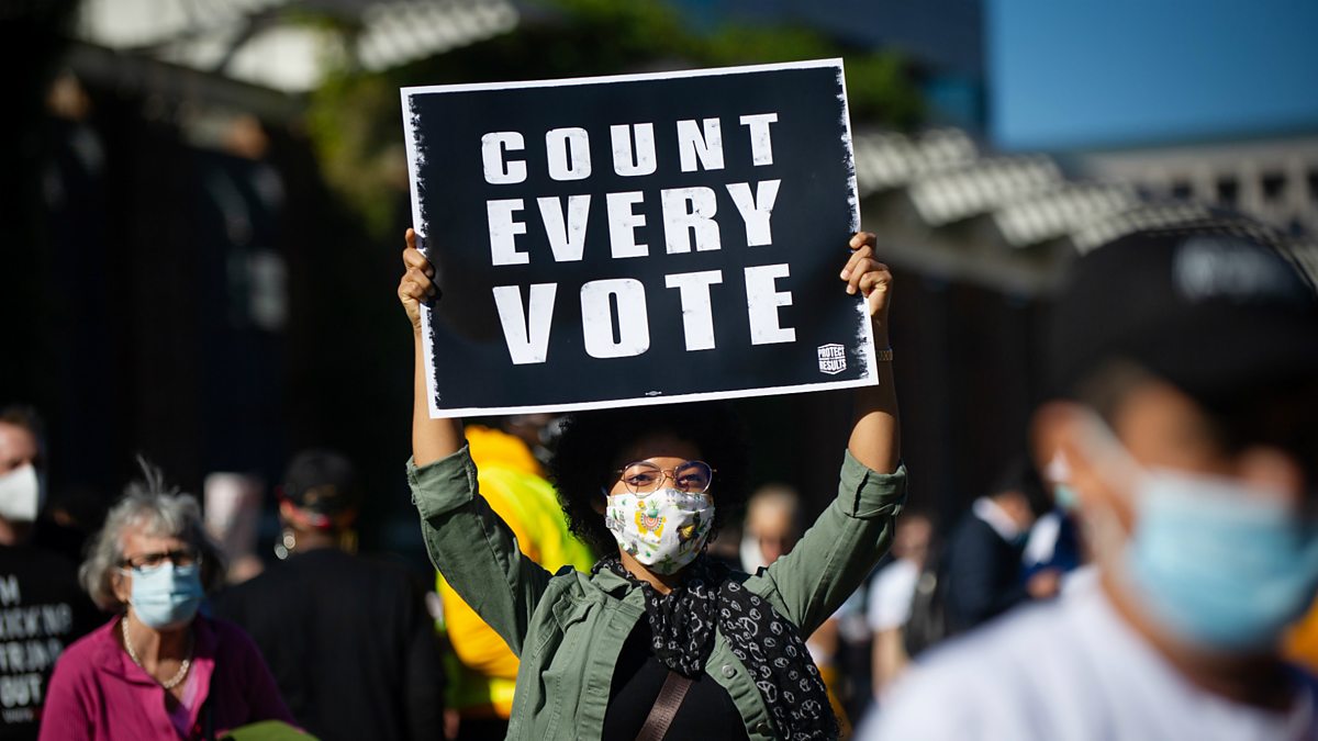 Photo: Protest in support of vote count in Pennsylvania Credit: EPA Wires