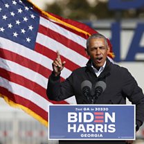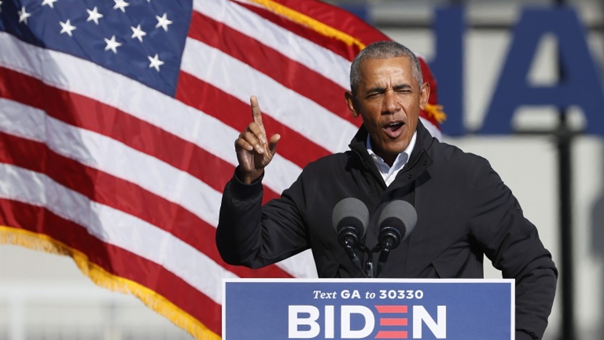(Photo: Former US President Barack Obama speaks during a Voter Mobilization Drive-In Rally in Atlanta, Georgia, the day before the US Presidential election. Credit: EPA/ERIK S. LESSER)