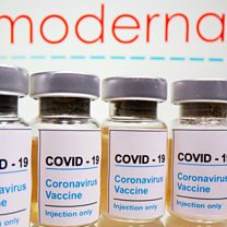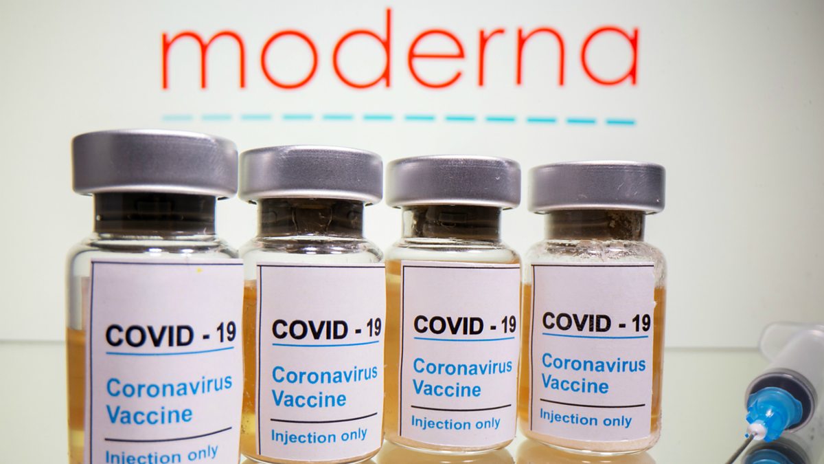 (Picture: Vials and medical syringe are see in front of Moderna logo. Credit: Reuters wires)