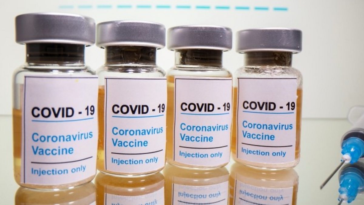(Picture: Vials with a sticker reading COVID-19/Coronavirus vaccine/Injection only. Credit: Reuters/Dado Ruvic/Illustration.)