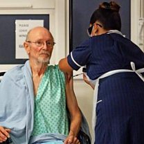(Photo: William Shakespeare receiving his first dose of the Covid-19 vaccine. Credit: Reuters)