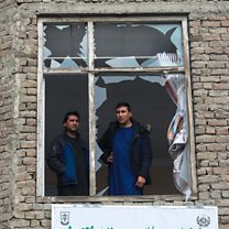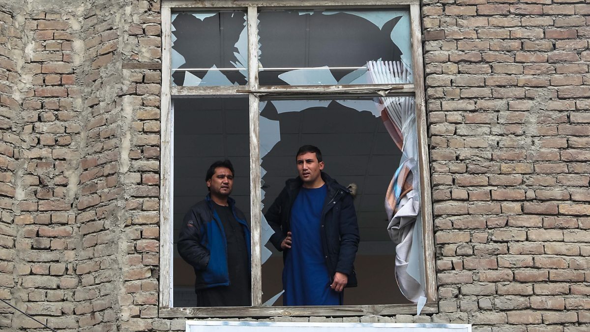 (Photo: Afghan men look out from a damaged window of an apartment overlooking the site of an explosion, in Kabul. Credit: EPA).