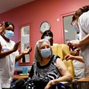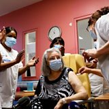 (Photi: The first person to get the jab in France was a care home resident named as Mauricette, 78. Credit: Reuters)