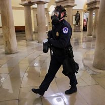 (Photo: a member of the police wears a gas mask inside the Capitol building, Washington, January 6, 2021. Credit: Reuters)