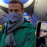 Poisoned opposition leader Alexei Navalny is held by police after flying back to Moscow.