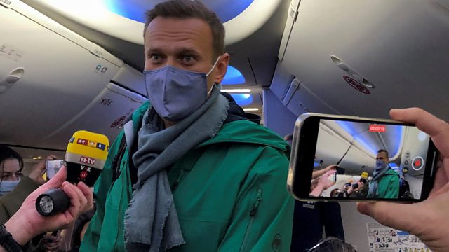 Kremlin critic Alexei Navalny has been detained by police at passport control after flying back to Russia - five months after he was almost killed in a nerve agent attack. We hear the latest on events in Moscow.