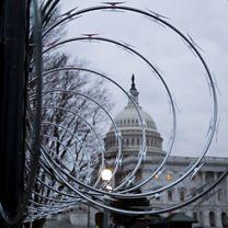 (Picture: Razor wire outside the US Capitol Building in Washington. Credit: EPA/Michael Reynolds)