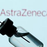 (Image: A vial and syringe are seen in front of a displayed AstraZeneca logo. Credit: Reuters/Dado Ruvic)