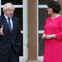 (Photo: British Prime Minister Boris Johnson and Northern Ireland’s First Minister Arlene Foster at Hillsborough Castle during the Prime Minister’s visit to Belfast on 13/08/2020. Credit: Brian Lawless/PA Wire).