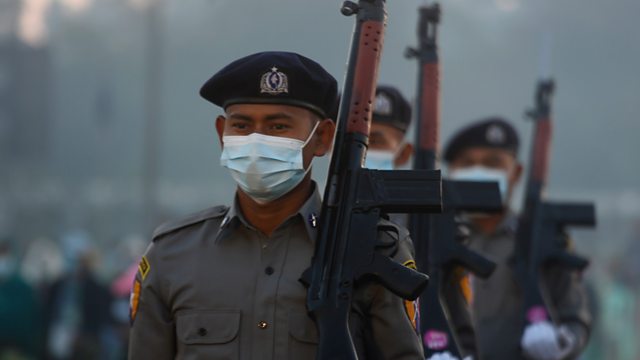 (Image: Myanmar honour guards during the parade to mark the 74th anniversary of Myanmar's Union Day. Credit: EPA/Nyunt Win)