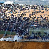 (Picture: Israeli soldiers shoot tear gas from the Israeli side of the Israel-Gaza border Credit: Reuters/Amir Cohen)