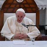 (Picture: Pope Francis speaks during a meeting at the Catholic Cathedral of Our Lady of Salvation in Baghdad Credit: EPA/ALESSANDRO DI MEO)
