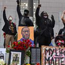 (Photo: Protesters raise their fists and chant after the "I Can't Breathe" Silent March for Justice in Minneapolis, Minnesota, U.S. March 7, 2021. REUTERS/Nicholas Pfosi)