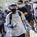 (Photo: Demonstrators react after being exposed to tear gas fired by the police during a protest in Yangon, Myanmar, 08 March 2021. EPA/LYNN BO BO)