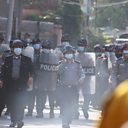 (Photo: Myanmar anti-riot police officers move forward to disperse demonstrators during a protest against the military coup in Pyinmana township, Naypyitaw, Myanmar, 04 March 2021. EPA/MAUNG LONLAN)