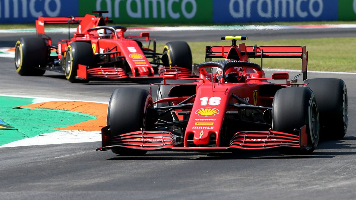 Photo credit: Ferrari drivers Sebastian Vettel and Charles Leclerc at Monza during the first practice session, September 2020 (Getty Images).