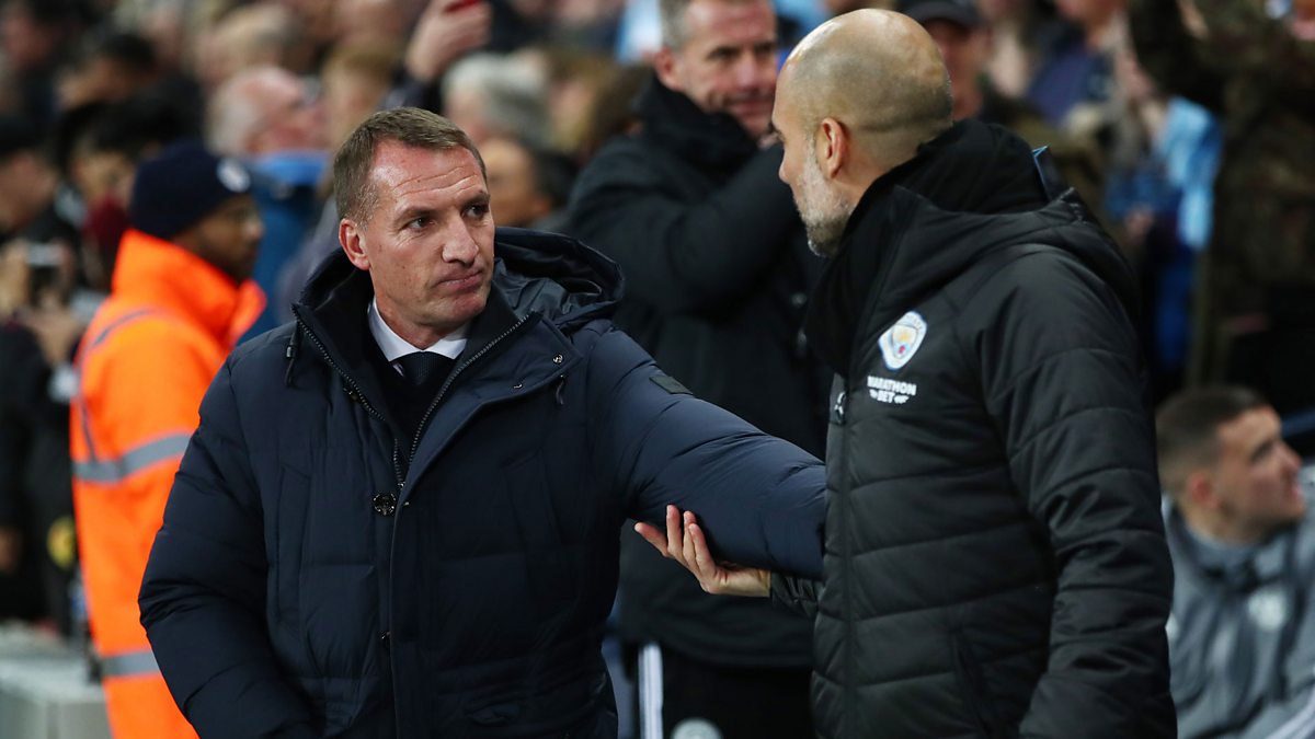 Credit Leicester City manager Brendan Rodgers and Manchester City boss Pep Guardiola on the touchline. (Photo: AFP via Getty Images)