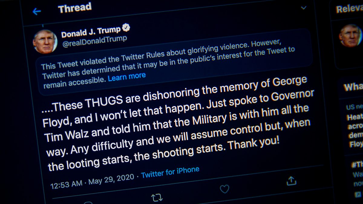 Twitter hides Trump Tweet for ‘glorifying violence’