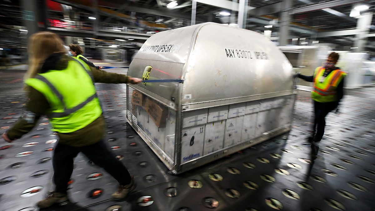 (Picture: A container of the first shipment of Pfizer's vaccine in the US. Picture credit: Getty Images.)