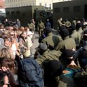 (Picture: Belarusian policemen detain protesters in a police van in Minsk. Credit: EPA)