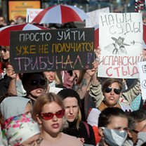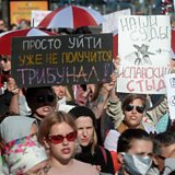 (Picture: Belarus women protest against the presidential election results in Minsk. Credit: EPA)