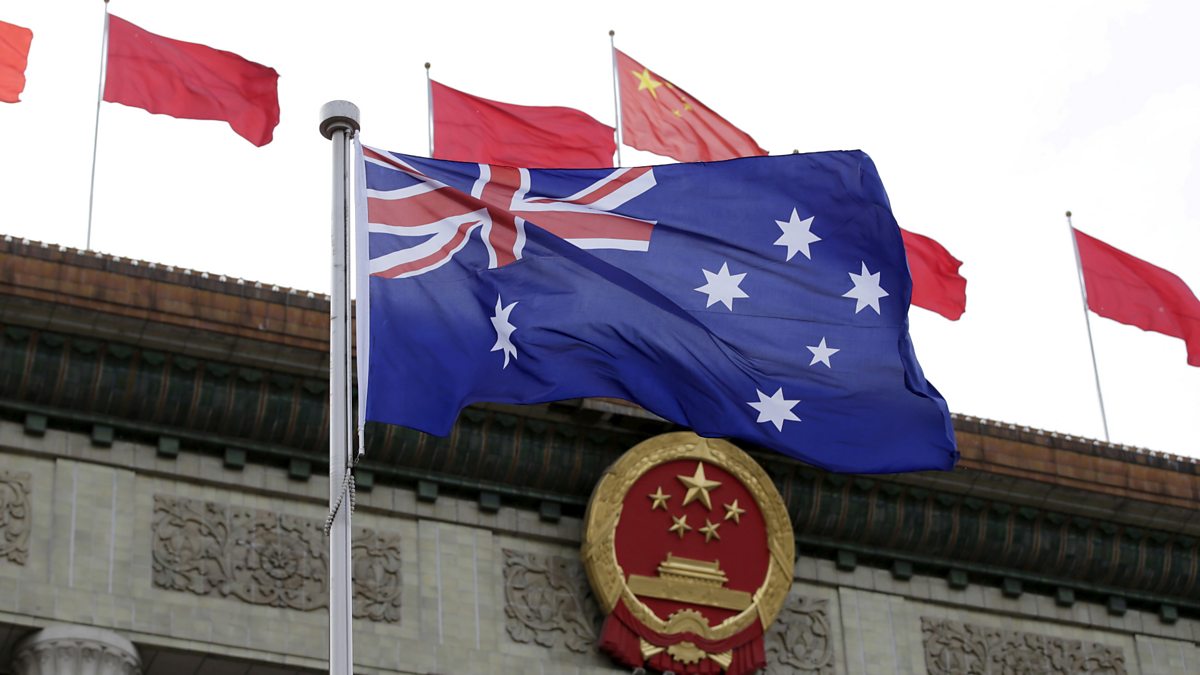 (Picture: The Australian flag flutters in front of the Great Hall of the People in China. Credit: Reuters)