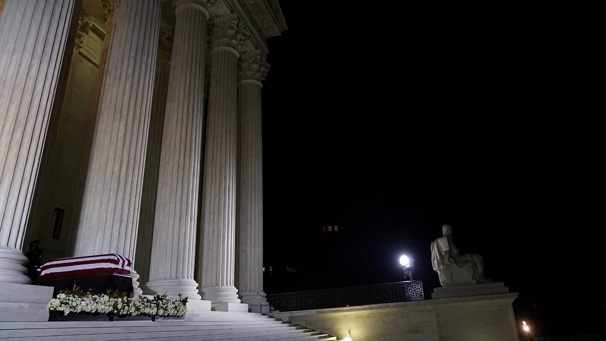 (Picture: The flag-draped casket of Justice Ruth Bader Ginsburg under the Portico of the U.S. Supreme Court building in Washington, U.S. Credit: Reuters)