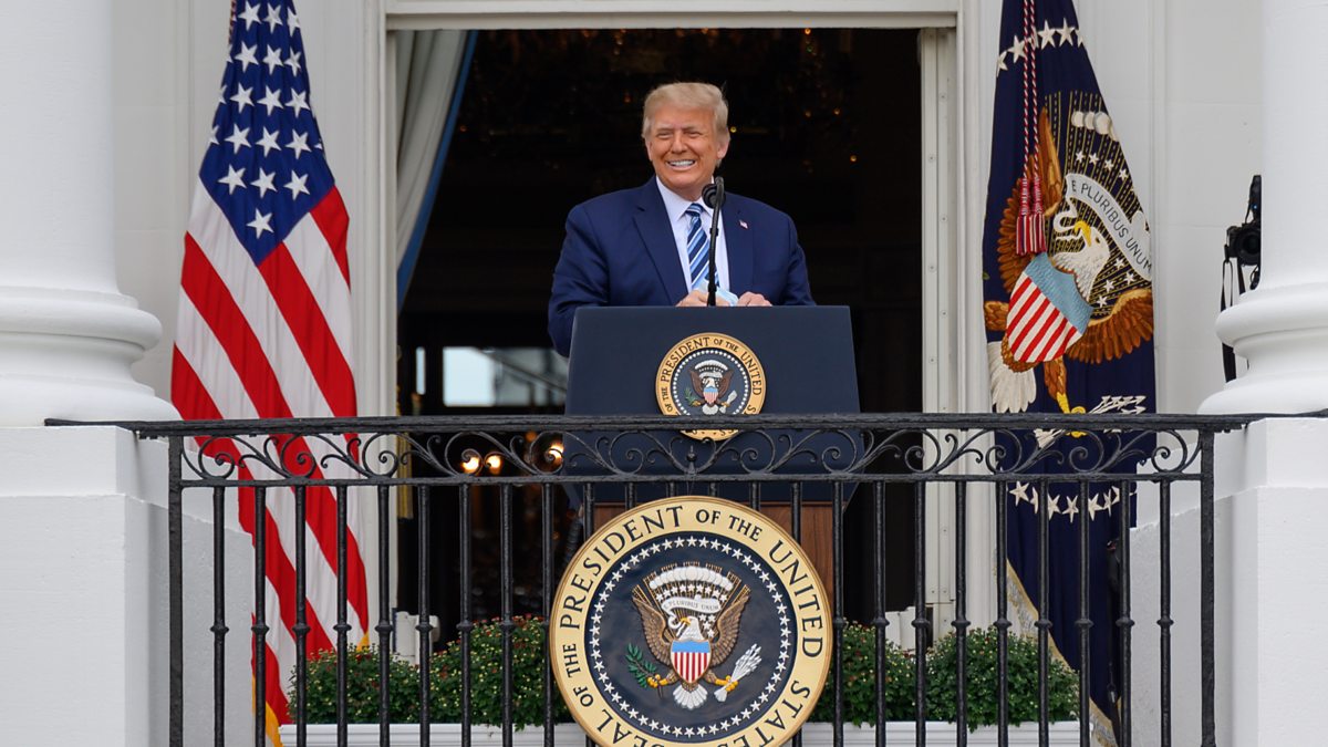 (Picture: US President Donald Trump speaks from the Truman Balcony of the White House in Washington, DC. Credit: EPA)