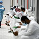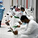 (Picture: Workers wait their turn for vaccine trials at Abu Dhabi National Exhibition Centre in Abu Dhabi, United Arab Emirates. Credit: Reuters)