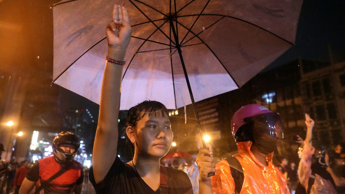 (Picture: A protester shows the three-finger salute during anti-government protests in Bangkok, Thailand. Credit: Reuters)
