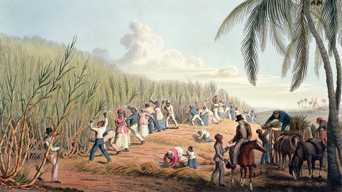 (Picture: 'Slaves Fell the Ripe Sugar', a painting by William Clark of slaves cutting sugar cane on a plantation in the West Indies in 1823. Credit: British Library)